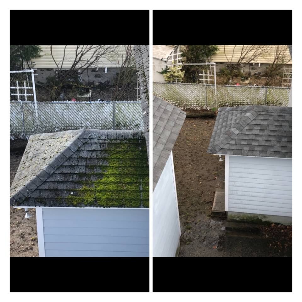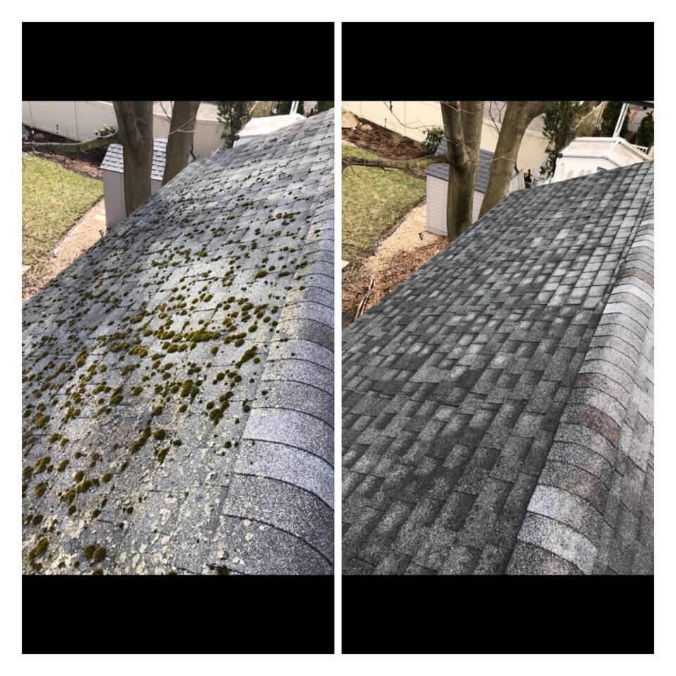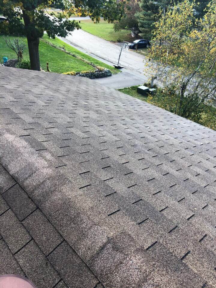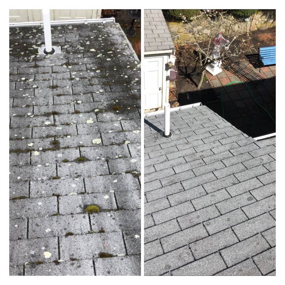 HiCleaners is the most experienced company in Framingham, MA that deals with roof washing and roof soft washing. All of our employees are trained to recognize precise solution mixing ratios to provide you with the safest and most effective soft washing service. Roofs are a commonly neglected part of a house due to the fact that most people don’t have ladders to access it, so it is very easy to just leave it alone and forget about problems that may start to arise. Just like many home owners, discoloration and small bits of moss on a roof can be overlooked because of the misconception that it is just aesthetic. However, it isn’t just aesthetic, the moss slowly lifts the granules off the shingles which in turn shorten the life of the shingle. The moss also spreads, just like any bacteria if it is left alone for too long, it can quickly become a problem that spirals out of control. Call HiCleaners for a free quote, we only use the most advanced eco-friendly solutions and equipment to make sure the job is done right, for the safety of the employees, your plants, grass, pets, and children.